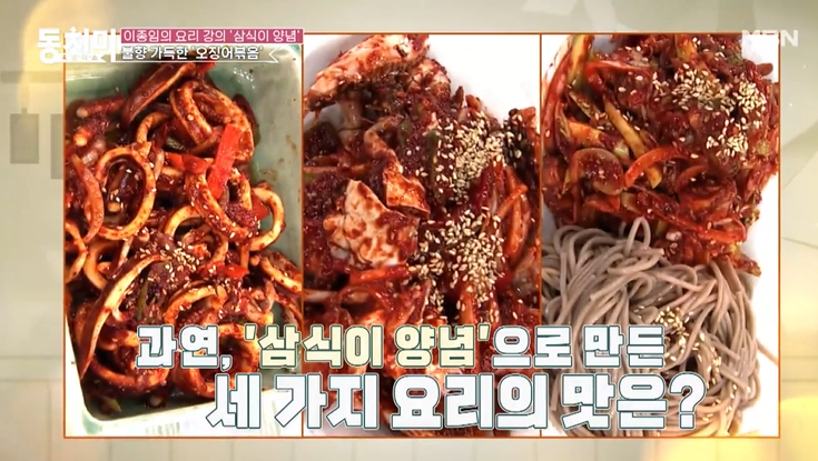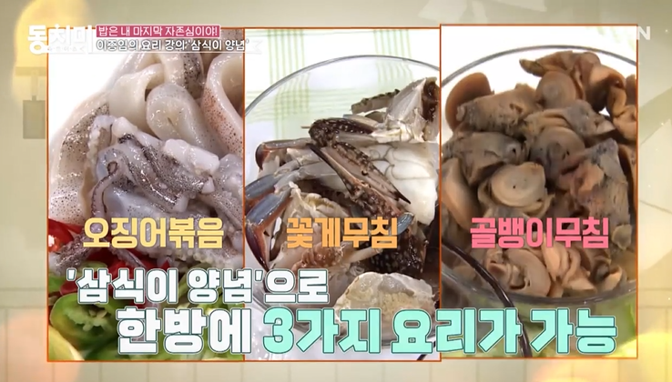 이 삼식이 양념으로 오징어볶음, 꽃게무침, 골뱅이무침 한방에 3가지 요리가 가능하네요
