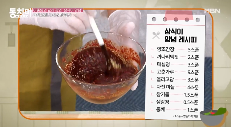 요리경력 50년 요리연구가 이종임님께서 삼식이 양념 레시피를 만드셨군요.