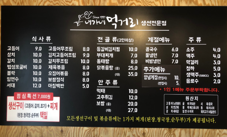 - 점심특선: 10,000원
