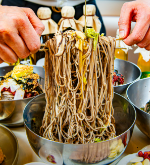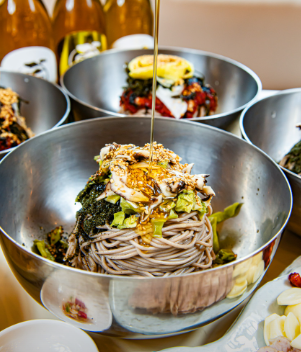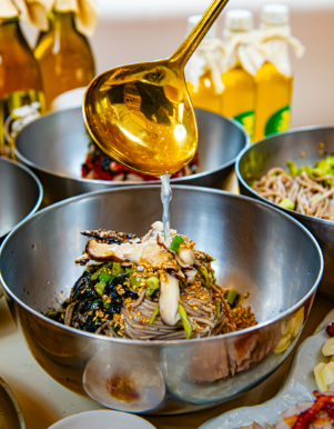 : 주문 즉시 갓 짜낸 국산 들기름으로 풍미를 더한 시그니처 막국수입니다.