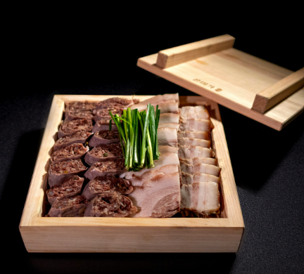 얼큰한 양념으로 매콤한 국물 맛이 특징. - 편백모듬수육 (30,000원)