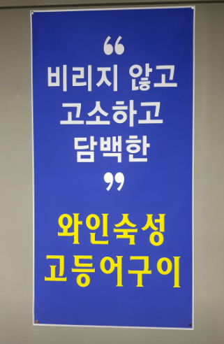 와인 숙성 고등어구이(12,000원)는 와인 숙성을 통해 깊은 맛을 끌어낸 특별한 구이로, 비린내 없이 깔끔하고 풍미가 가득한 생선구이 메뉴입니다.