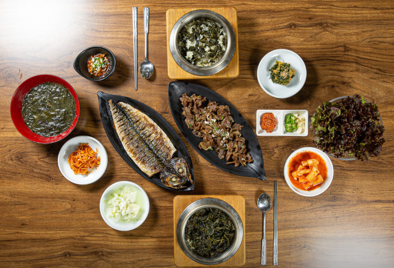그 외에도 갈치찜(35,000원), 옥돔구이(18,000원), 임연수구이(15,000원) 등 다양한 생선 요리와 함께 뽕잎나물 가마솥밥(5,000원)도 제공됩니다. 이곳의 가마솥밥은 전통 방식으로 지어, 고소함이 배어 있는 밥맛을 느낄 수 있습니다.