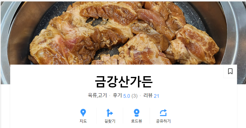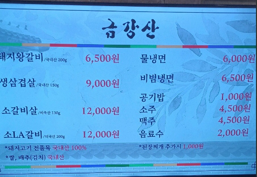 국내산 되재갈비 1인분 6,500원 상호명 및 위치