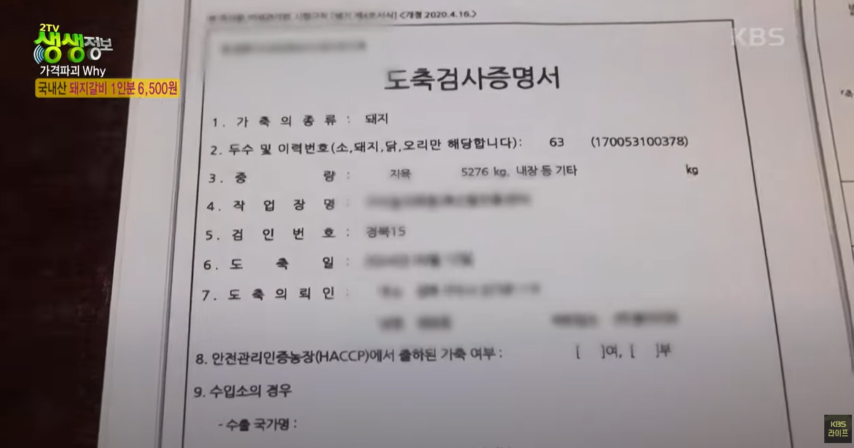 국내산 돼지가 맞을까했을데, 정말 도축검사증명서로 국내산임을 증명해 줍니다.