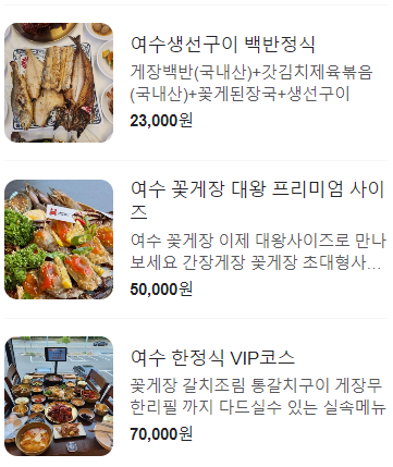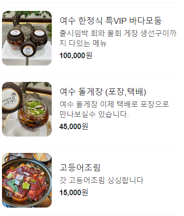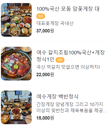 메뉴는 게장과 갈치 조림이 유명하다고 합니다. 여수 돌게장은 국내산만 취급한다고 하니 더 기대가 됩니다.