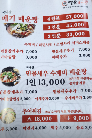 평일이나 주말 관계없이 늦은 시간까지 운영하기 때문에 언제든 방문할 수 있어 편리할 것 같습니다. 특히, 추운 날씨에 뜨끈한 메기매운탕이 생각날때 꼭 방문해 볼 예정입니다.