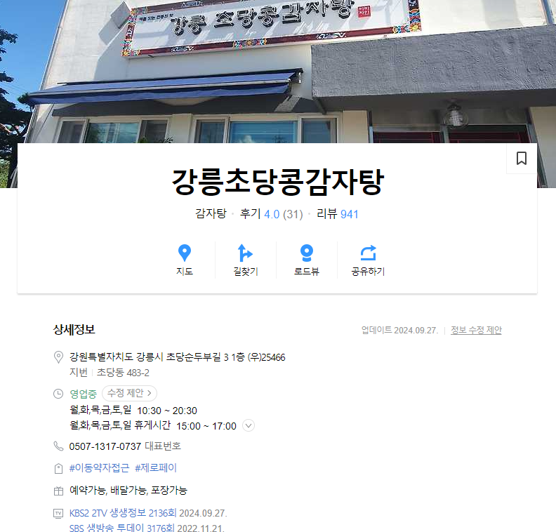 :강릉 강릉시 초당순두부길 3 0층 강릉초당콩감자탕