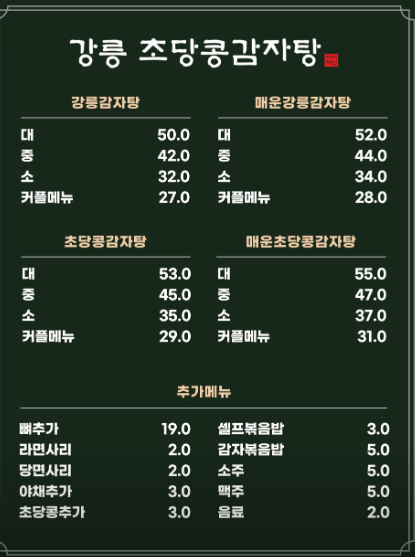 강릉을 방문할 때, 이곳은 단순히 한 끼 식사를 넘어서 강릉의 전통과 현대가 어우러진 미식 여행의 한 부분이 될 수 있습니다. 특히 경포대나 허균허난설헌 기념공원을 둘러본 후 이곳에 들러보면, 강릉의 자연과 함께 즐기는 색다른 감자탕 한 그릇이 더욱 특별하게 느껴질 것입니다.