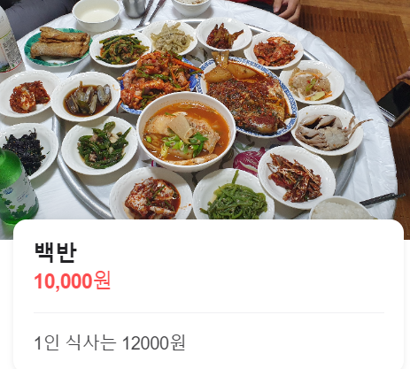 메뉴는 단일 메뉴 백반입니다. 가격은 1만원이며, 1인만 식사를 할 경우는 1,2000원입니다.