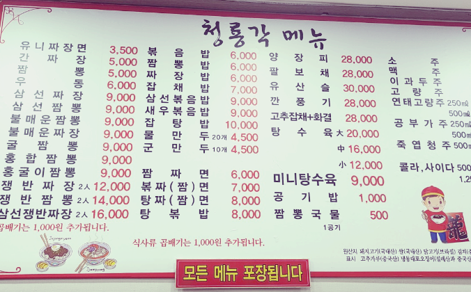 이외 중국집에서 볼수 있는 많은 메뉴가 있으니 참고해 주세요.