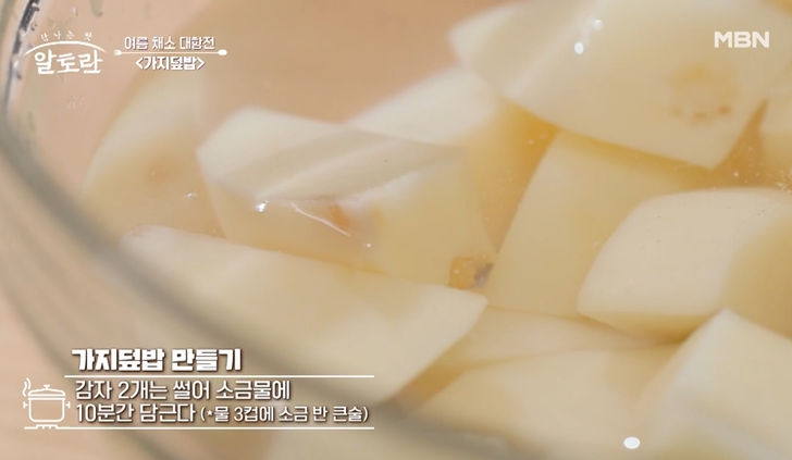 감자를 소금물에 담그는 이유는 간이 감자에 은은하게 베어 감자의 맛과 향을 더 진하게 만들어 주는 꿀팁