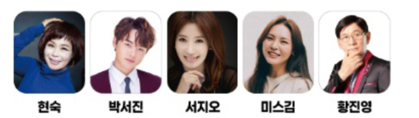 현숙, 박서진, 서지오, 미스김, 황진영으로 라인업이 기대됩니다.