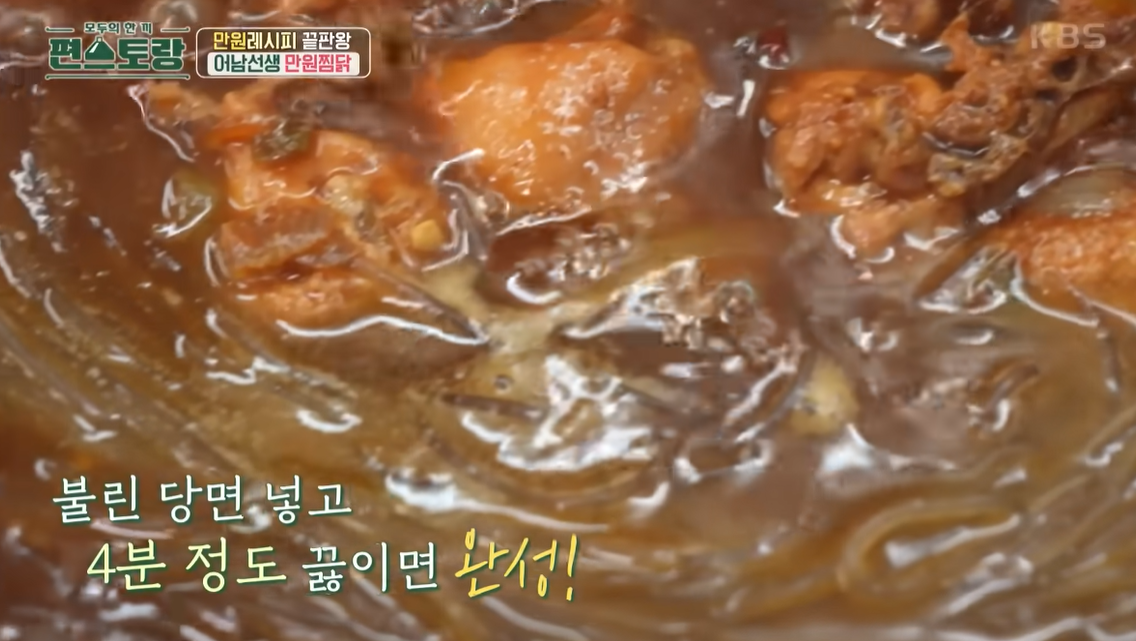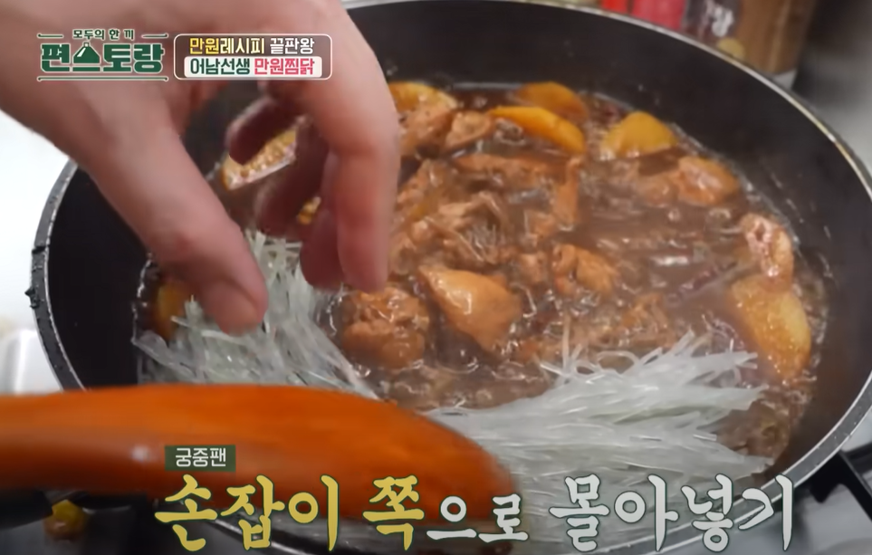 편스토랑 류수영 만원찜닭 레시피의 마지막은 당면을 넣고 4분정도 끓이면 완성된다.